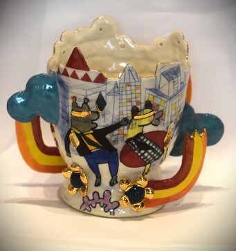 Conceptualised by Coni Kalinowski, along with Thom Bumblauskas and Peter Jakubowski from Clay Arts Vegas. 43 artists from seven countries, with artists paired using a variety of factors, including individual styles, the themes of the artists’ work, and even personality. The artists were given no specific instruction as to how to do their work. Some shared pieces back and forth, some created interlocking pieces, and others melded their individual styles into a unified approach.