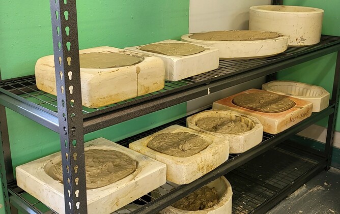 We recently received funding for some industrial shelves that have been put to use in our clay reclaim process. We’ve been able to increase the number of plaster batts we use to dry out the clay slops, which helps us save more clay from being wasted! And helps us make some interesting and affordable clay available to our pottery whānau.