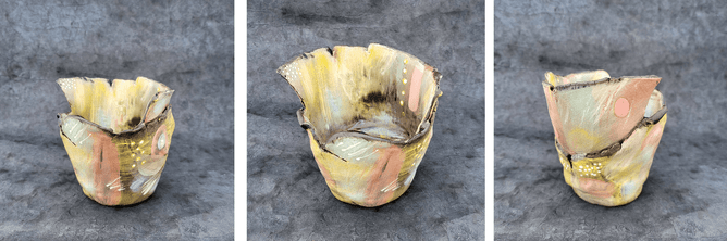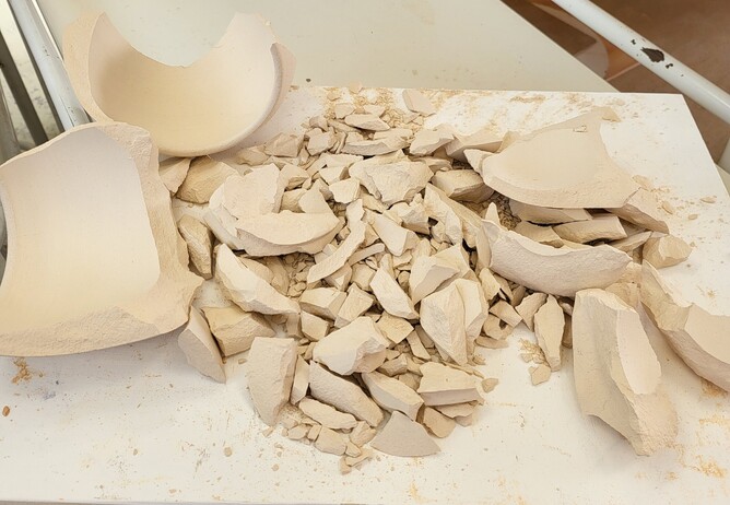Unfortunately we’ve had a few explosions in the bisque firings lately. This is caused by any moisture content in the clay turning to steam when the kiln temp hits 100 degrees, and then expanding within your pot walls, which causes the explosion. You can avoid disappointment and potentially damaging the kilns and other people's pieces by making sure your pots are fully dry before placing them on the bisque shelves for firing. Remember thicker pots take a lot longer to dry too.