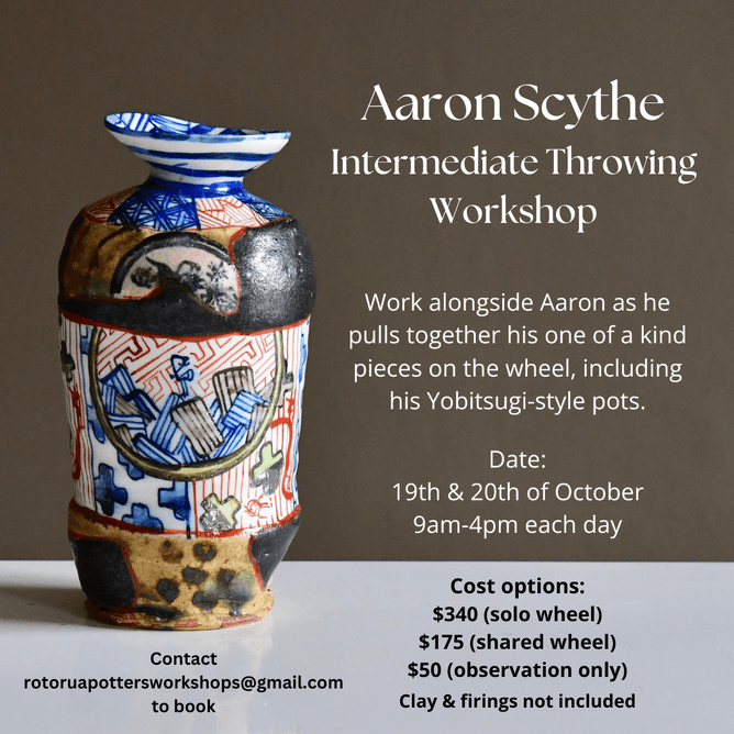 Rotorua Potters have the very excellent Aaron Scythe leading a 2-day, intermediate throwing workshop next month! Email them to book a place: rotoruapottersworkshops@gmail.com . And at the same time they will have a market in the Arts Village where they’re located on the Saturday with food, drinks, and arts & crafts. Sounds like a good time!
