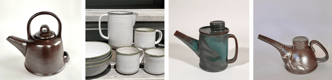 Suzy mostly makes domestic-ware and likes mugs, jugs and teapots the best, then bowls and bottles. Her favourite things to make are teapots because she likes the challenge of design, and problem solving how the pieces will go together.