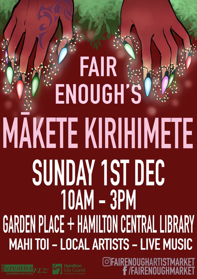 Check out this awesome Chrissy Market on tomorrow in Garden Place, Kirikiriroa. Several of our members will have stalls there and there’s live music as well. Bound to be a good time!