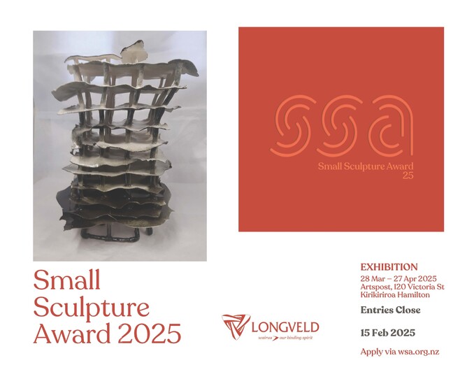 The bi-annual Small Sculpture Award is being held on 28 March 2025 and entries are now open. With a successful 2023 exhibition, we are excited to host these awards at the Artspost galleries in Kirikiriroa, Hamilton. Small works in all mediums will be judged by Dr. Glen Hayward. The call is out for entries from ages 15+ to all artists throughout Aotearoa, New Zealand.