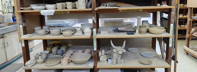 Please help us out by putting your drying work in the studio, on the drying shelves until they’re ready to fire. Thanks ever so much 😊