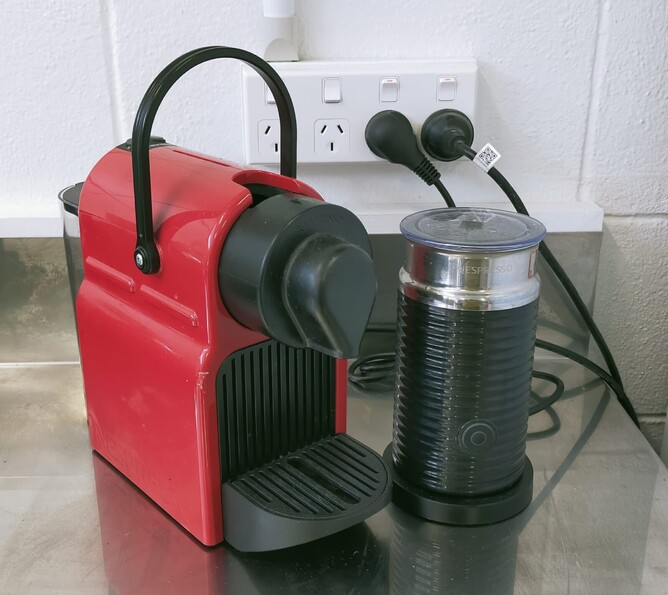 The lovely Ronda Smale has donated this little espresso machine and milk fluffer-upper.