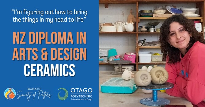 NZDAD is delivered by WSP alongside Otago Polytechnic. The program is 2 years full-time study or 4 years part-time study. The theory courses, including glaze technology and art history, are delivered online and the practical part of the course is delivered through the studio at WSP. From 2026 the practical tutorials will be held in-studio every Friday morning during term time with students encouraged to stay on for the afternoon Open Studio session..