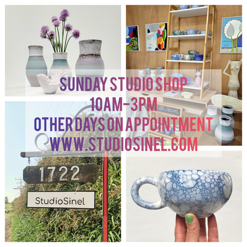 Ceramic art & design for sale, make your own kit sets, gift vouchers for pottery workshops and a big clearance table (for as long stock lasts). Eftpos available. The working studio will also be open to view for those who want to have a look "behind the scene" where all the action happens. Please visit www.studiosinel.com for more information.
