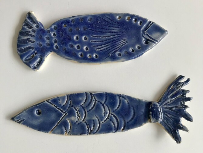 I'll leave you with these two lovely fish I found on the glaze shelves this morning. Made by Marian Thodey, they reminded me that tomorrow we slip begins Pisces' time