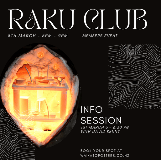 1st Raku night of 2022 is coming up on March 8th.This is a fun style of firing which originates from Japan. If you have not done raku before, come along to our information session 6 - 6:30pm Tuesday 1st March. David will guide you through what are good clays to use and what works.This is a members event. Book your spot at https://www.eventspronto.co.nz/event5387