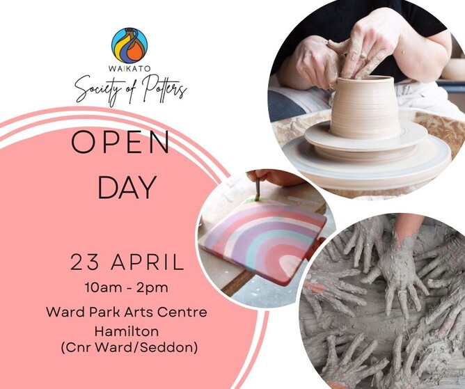 Join us at the Waikato Society of Potters Open Day on 23 April 2022. Not only will it be a brilliant day out, it's a free thing to do with whānau over the school holidays because we got some funding!