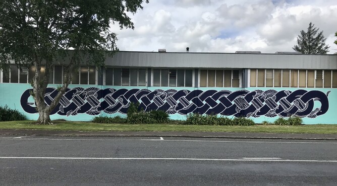 The next time you round the corner of Ward Street onto Seddon Road, check out the back of our building. We are delighted that we have been given the Boon: Hamilton Street Art treatment and got a really beautiful mural. Artist Elliot Mason and some assistants worked through the challenging weather last week and painted this beautiful design. You can check out other work by Elliot on their Insta account elliotmason_