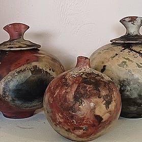 Given only one out of our group of 20 had pit-fired before (just once), we were extremely pleased with the results we achieved. Here is the process we followed and photos of some of the finished pots...